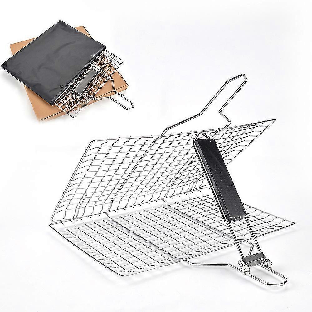 Grill Grill Grilling Grill Basket Outdoor, Portable Stainless Steel Grill Basket, Foldable Grill Basket With Detachable Handle For Steak Shrimp Meat G