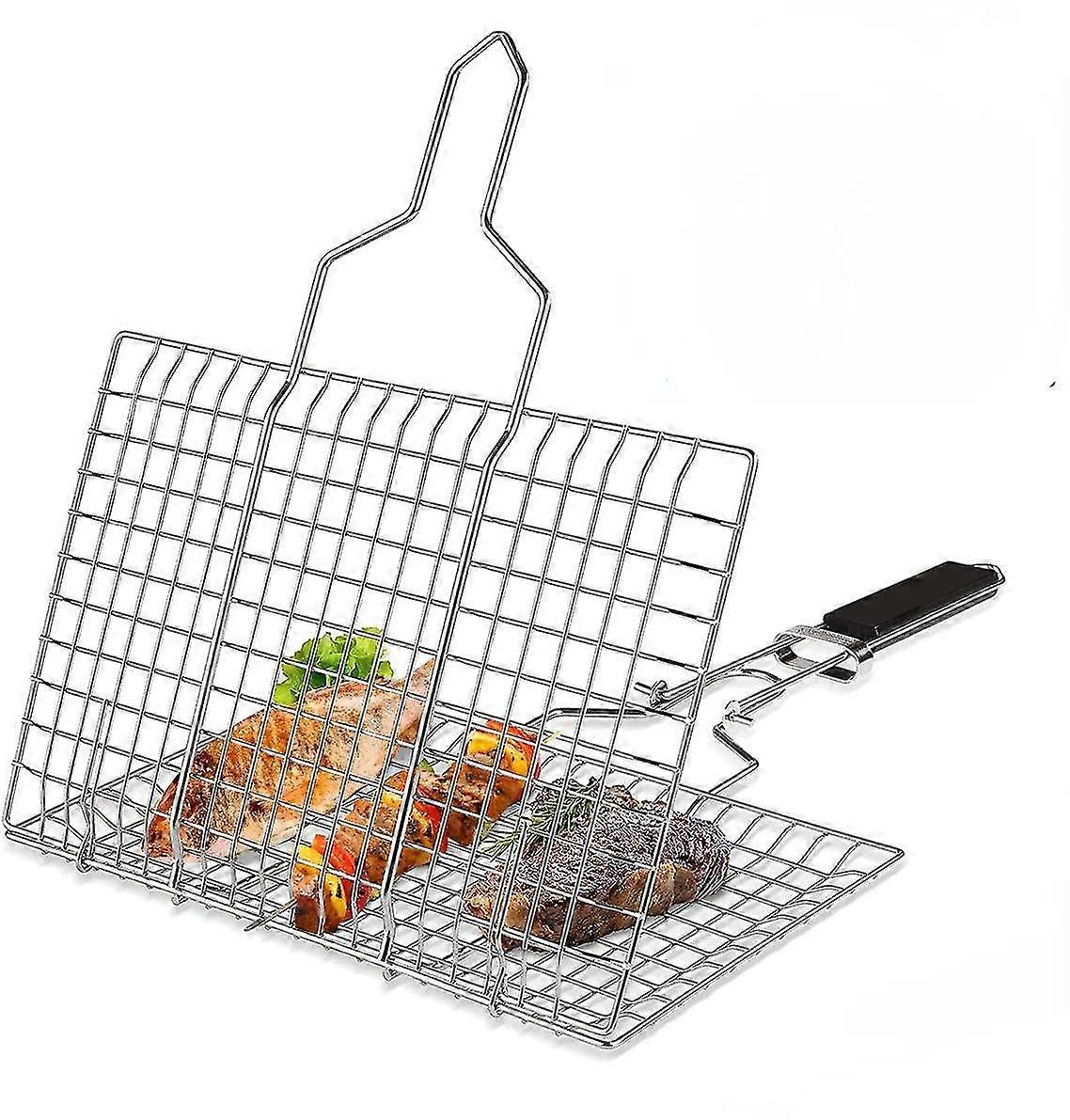 Bbq Grilling Basket, Stainless Steel Folding Grilling Baskets With Handle, Portable Outdoor Camping Bbq Rack For Fish Vegetables Shrimp