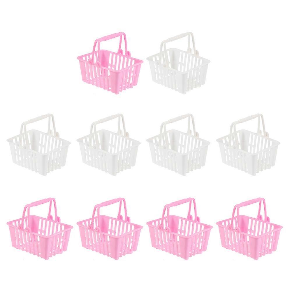 Kid Basket Miniature Basket For Family Fun White Plastic Doll Decoration Simple and Natural Appearance 10Pcs