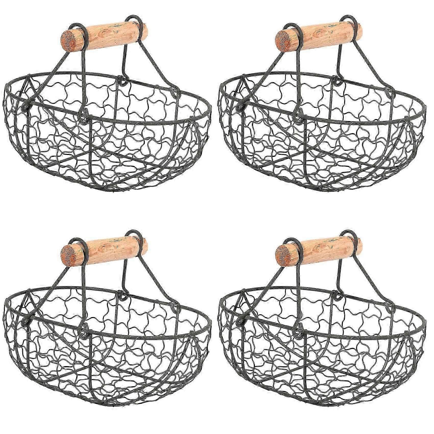 4X Retro Metal Basket with Wooden Handle - Portable Multi-Function for Vegetables Fruits Eggs Groceries