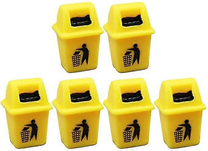 Miniature Trash Can for Dollhouse, 6pcs Kitchen Accessories, Yellow