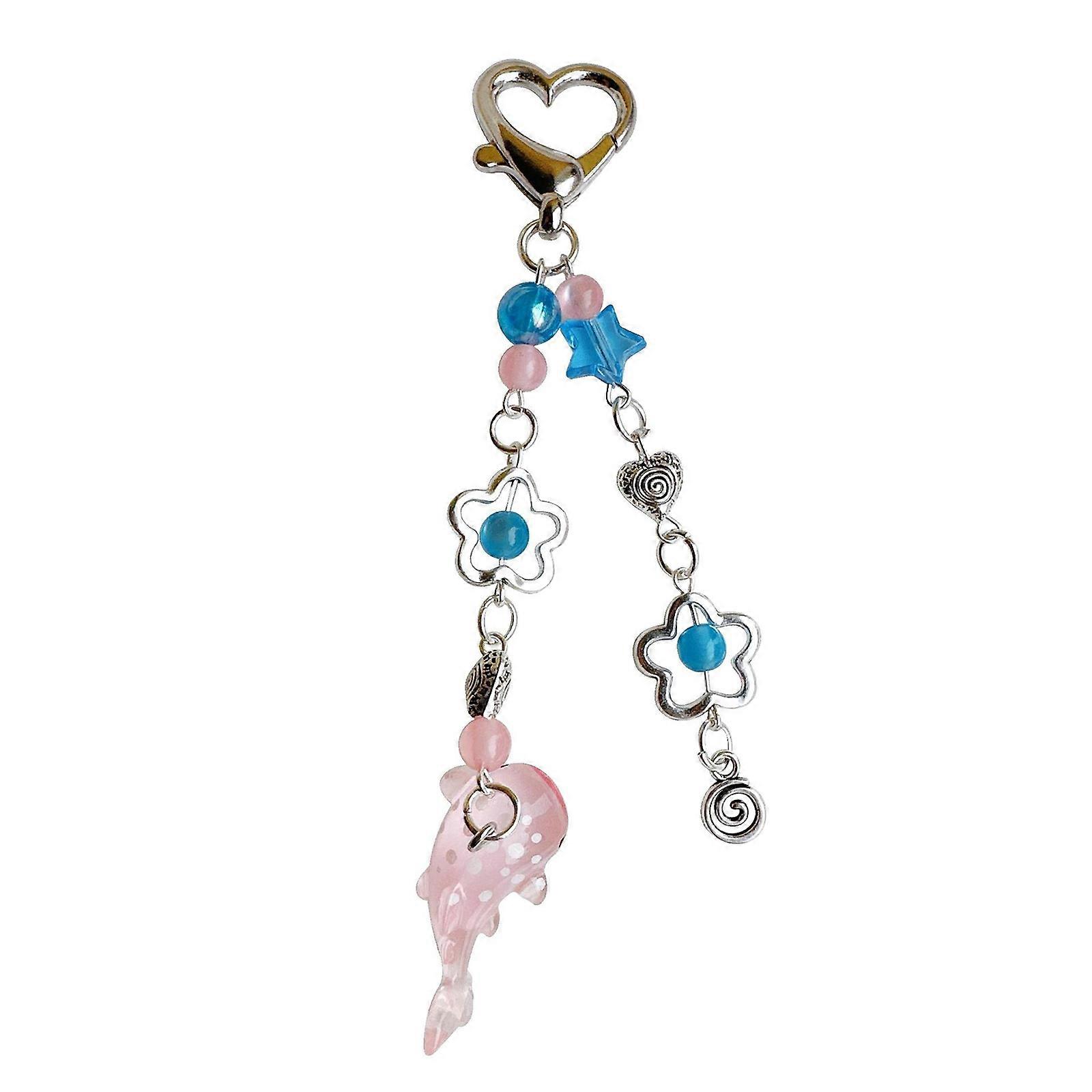 Ocean Life Keychain Whale Pendant Beaded Key Chain Portable Sea Animal Keyring Stylish Accessory for Keys Bags Purse Pink
