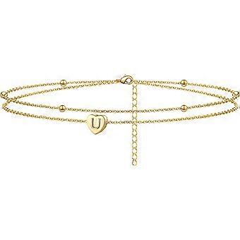 Initial Heart Ankle Bracelet Layered Heart Letter A To Z Bead Chain Anklet for Women 14K Real Gold Plated Beach Jewelry
