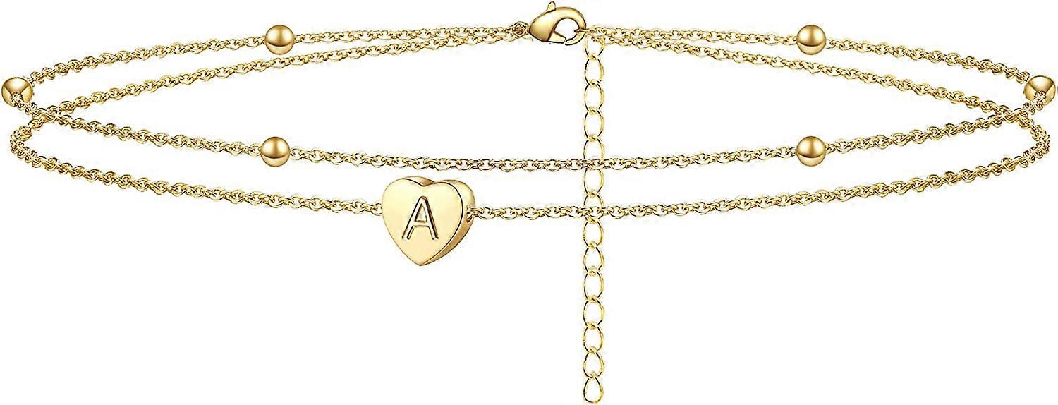 Initial Heart Ankle Bracelet Layered Heart Letter A To Z Bead Chain Anklet for Women 14K Real Gold Plated Beach Jewelry