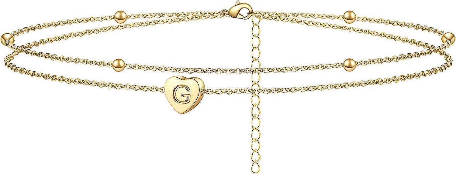 Initial Heart Ankle Bracelet Layered Heart Letter A To Z Bead Chain Anklet for Women 14K Real Gold Plated Beach Jewelry