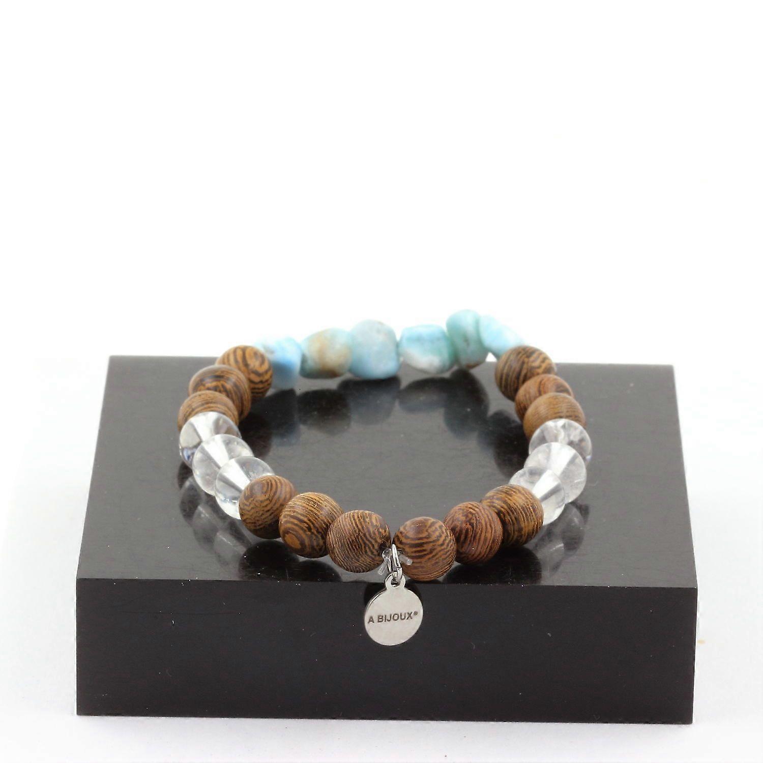 Dominican Republic Larimar Bracelet + Quartz Beads + 8 mm wood
