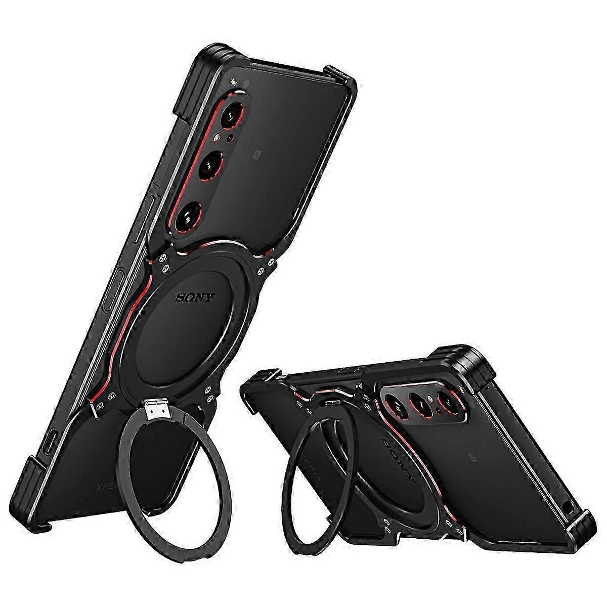 For Sony Xperia 1 V Kickstand Case Metal Bumper Magnetic Phone Cover - Black Silver