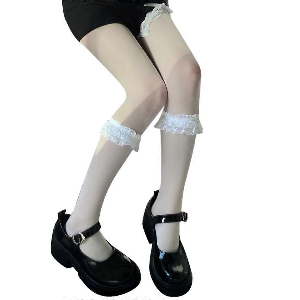 Sweet Lolita Silky Long Socks Ruffled Lace Bow Harajuku Kawaii College Stockings