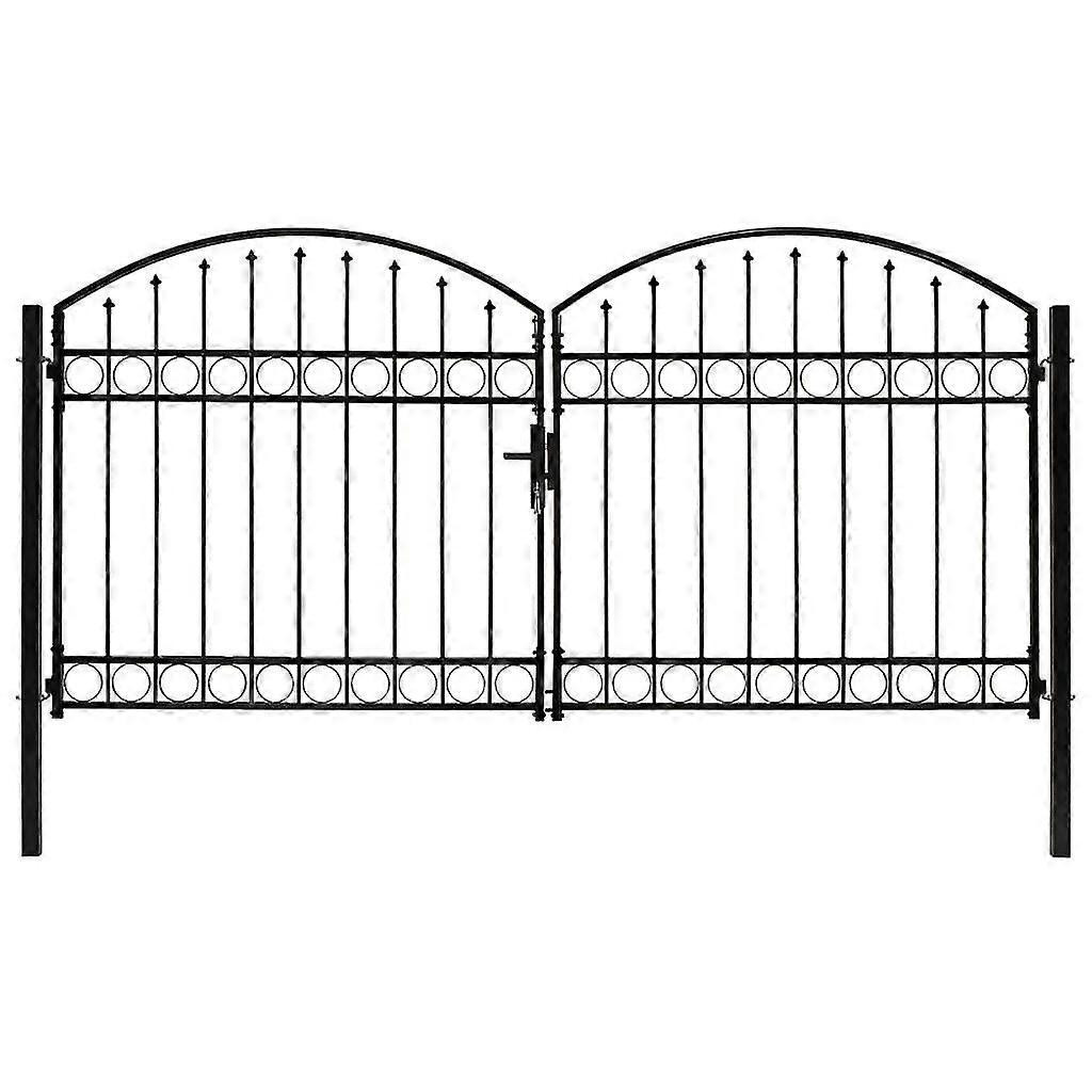 Fence Gate Double Door With Arched Top Steel 300x125 Cm Black