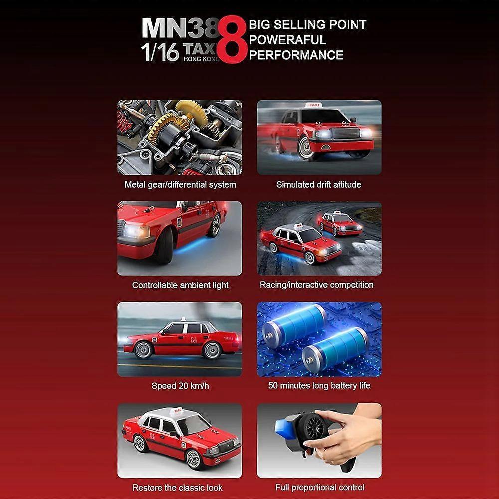 Remote Control Car, 2.4GHz Remote Control Racing Car with Drift Tires Lights, Rechargeable Remote Control Taxi for Boys and Girls Birthday, Red