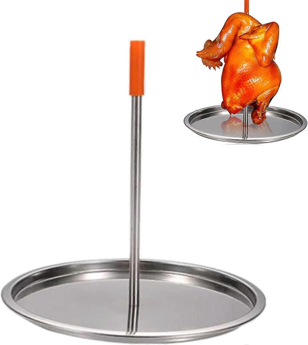 [Size]The diameter of our vertical skewer is about 19.5cm, and the steel nails are about 22cm long. The size is moderate and easy to use. Please measure the size you need before buying to avoid model mismatch. [Material]Our vertical skewer is made of high-quality stainless steel, with smooth surface, exquisite workmanship, anti-corrosion and anti-rust, and rounded edges. [Application]Our stainless steel chicken roaster stand is very practical barbecue supplies, often used for roast chicken, fried chicken, barbecue, turkey, etc. [Unique Design]Our stainless steel chicken roaster stand adopts a vertical design, which is ergonomic. It is used for vertical grilling of poultry, and it is more convenient to cut meat. The base can be used to store the dripping oil from the grilled chicken. [Easy To Use]Our barbecue grilling rack adopts a detachable design, which can be disassembled when you don't use it. It does not take up space and is convenient for storage. Color: silver Delivery Quantity: 1 Piece