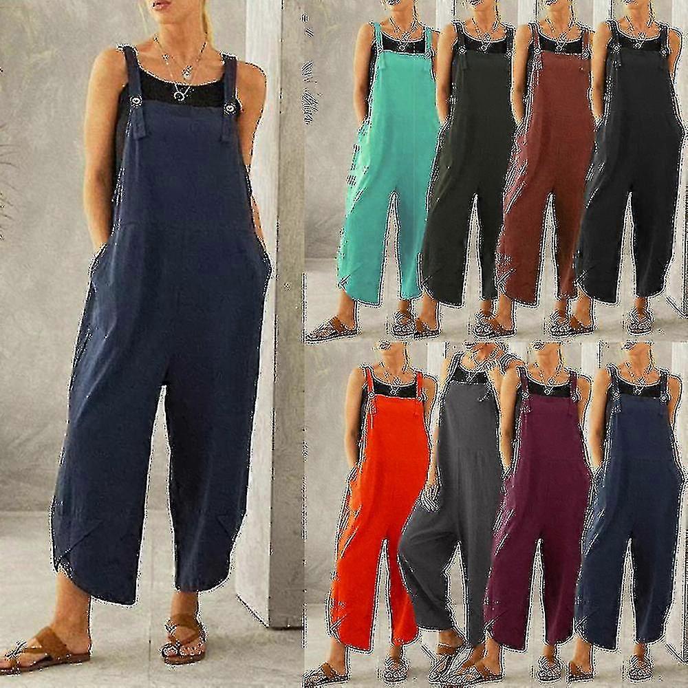 Womens Ladies Summer Autumn Dungarees Cami Top Buttons Overalls Baggy Jumpsuit Playsuit Pockets Trousers Pants Holiday