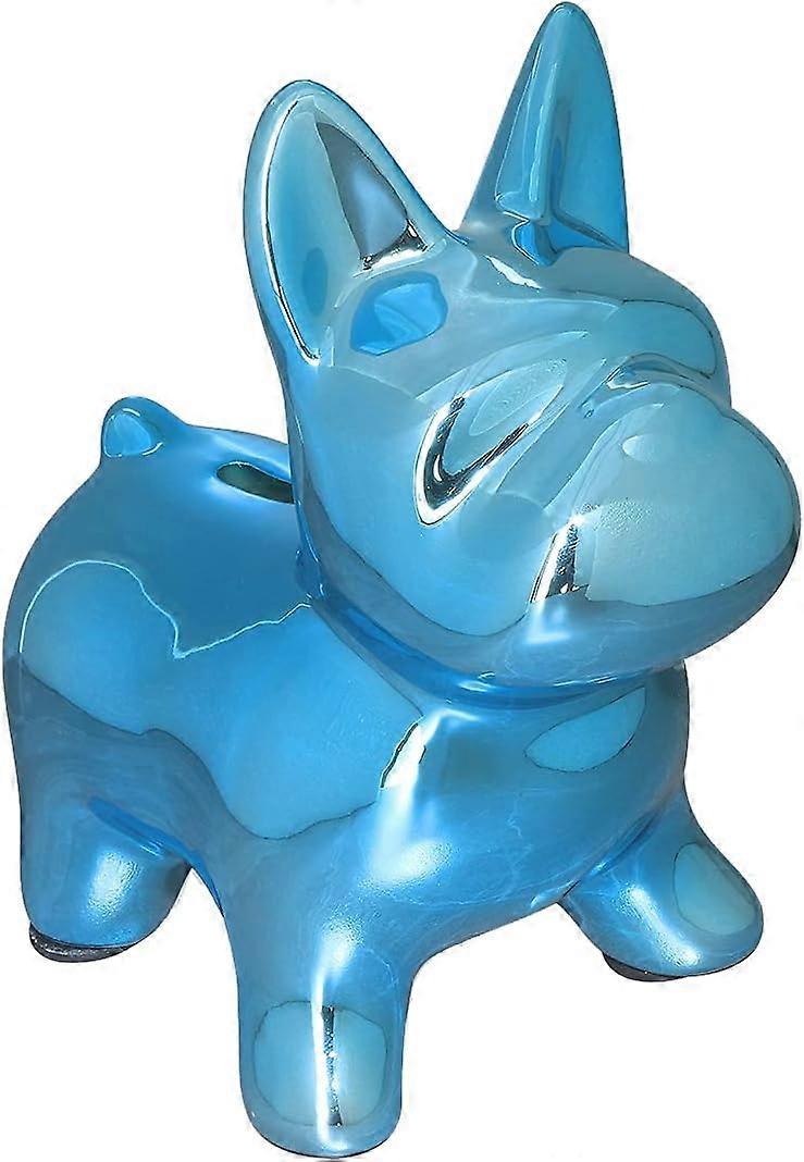 Ceramic Bulldog Piggy Bank for Boys Girls, Money Box for Kids, Coin Bank Keepsake with Plastic Stopper, French Bulldog Saving Jar, Nursery Dcor (Blue)