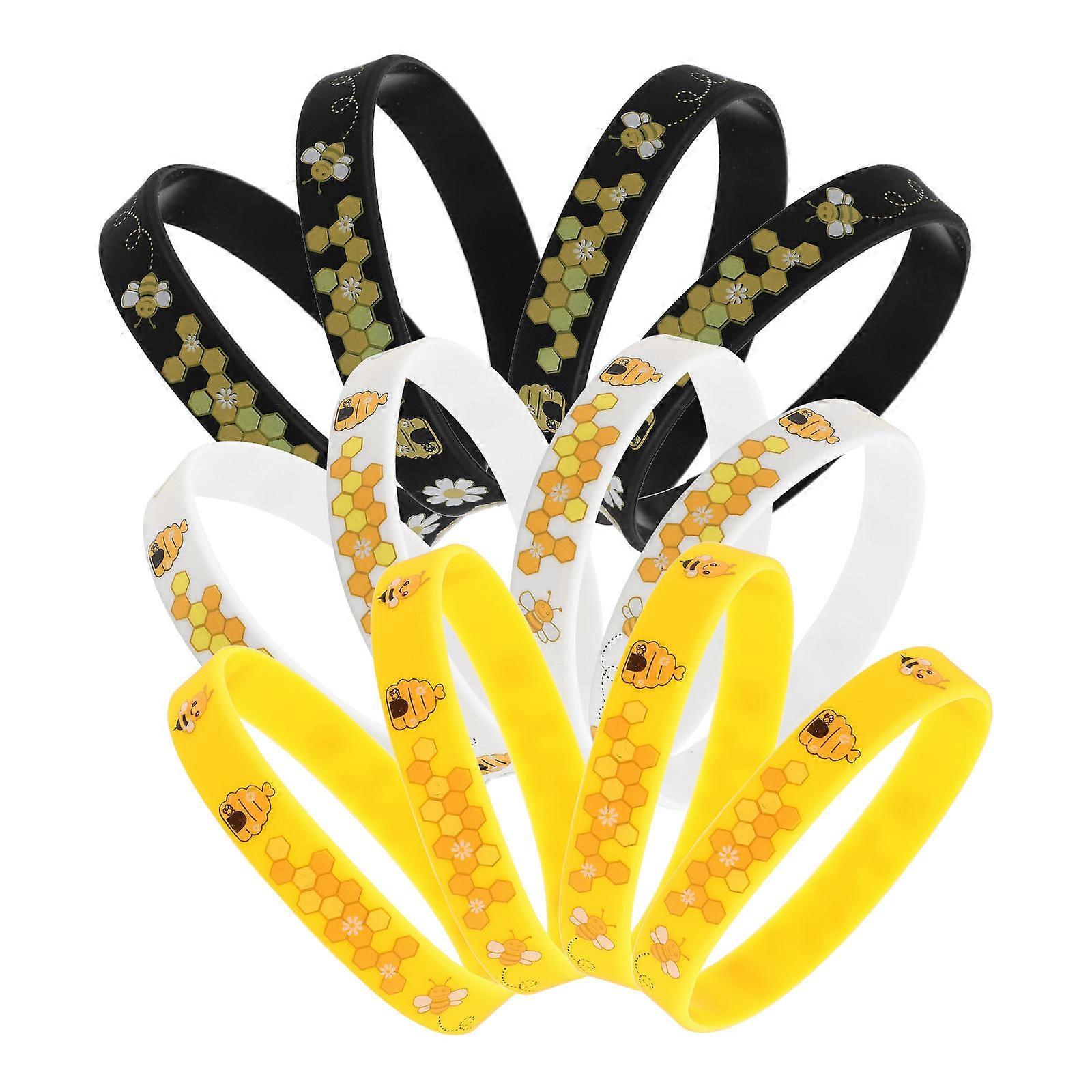 Silicone Bee Theme Wristband Circular Bee Party Accessory For Friends 12Pcs