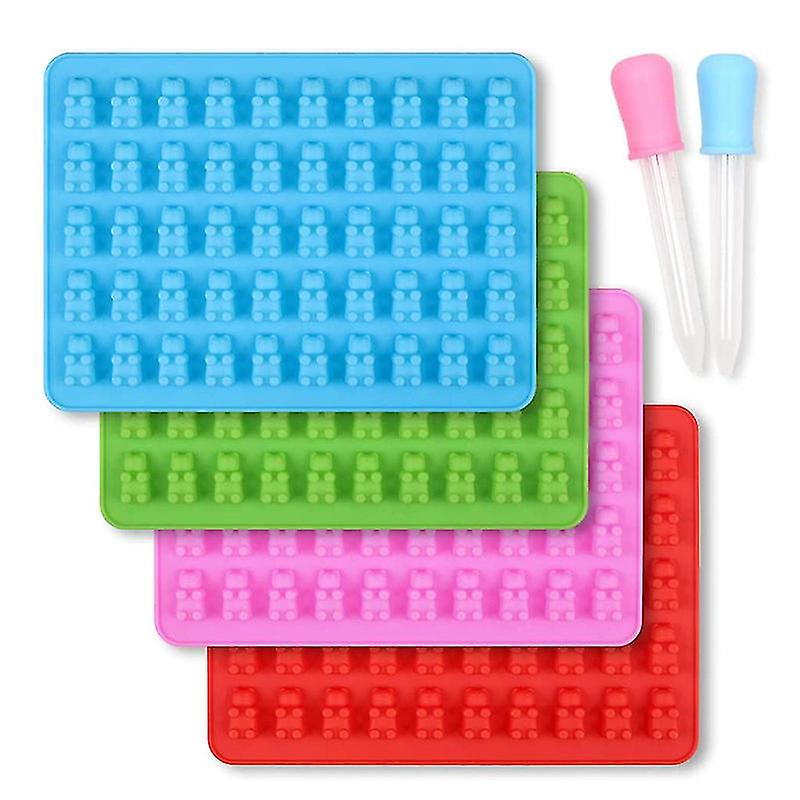Silicone Gummy Bear Candy Silicone Molds & Ice Cube Tablets - Set Of 4 Gummy Bear Molds And 2 Droppers For Chocolate, Jelly, Syrup, Soap Molds