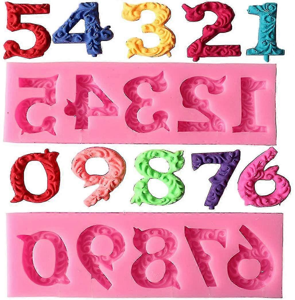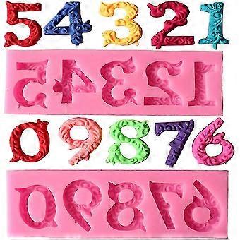Silicone Number 0-9 3d Embossed Fondant Chocolate Mold With Stick Hole For Birthday Cake Decorating Diy Baking, Pink