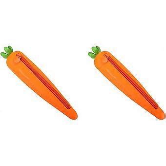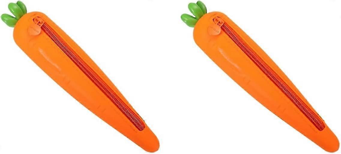 Silicone Pencil Pencil Bag Pencil Case Stationery Case Bag Carrot Pen(2pcs, Orange)