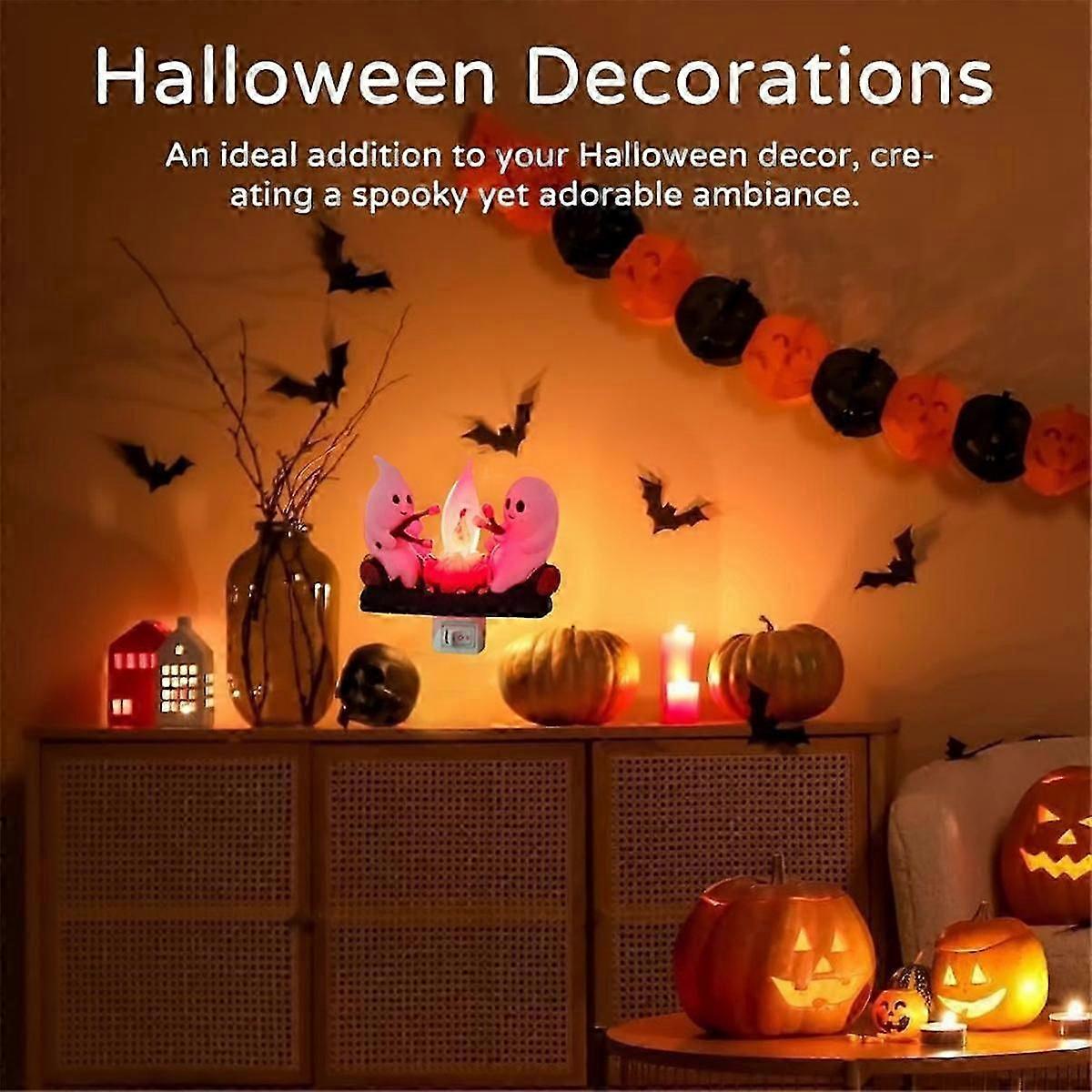 Ghost Campfire Flickering Night Light Flame Halloween Nightlight 3D LED Small Faux Campfire Night L
