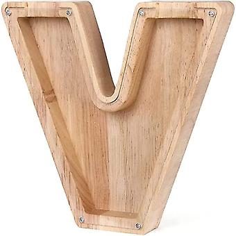 Personalized Letters Wooden Bank,Letters Coin Bank Money Box with Alphabet, Money Saving Bank For Family Christmas Birthday Gift Home(V)