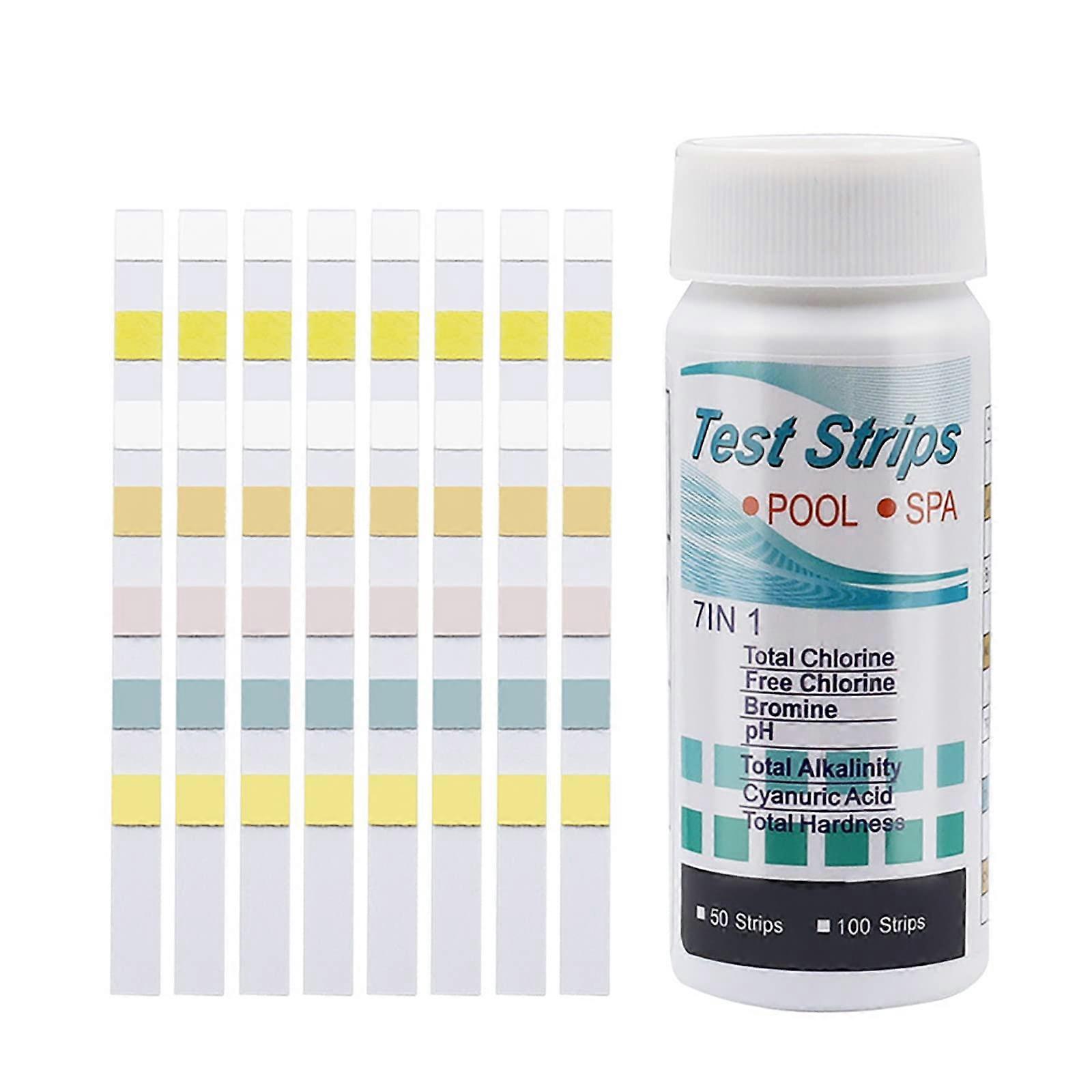Pool Test Strips 7-In-1 Water Tester For Spa - Free Chlorine, pH, Bromine, TA, TC, TH, CYA, White, 50 Strips