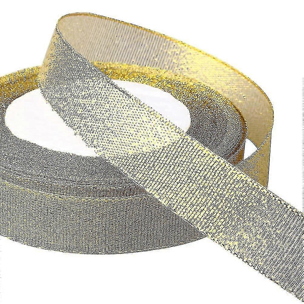 Metallic Gold Organza Ribbon, 20mm 25 Yard Decorative Ribbon Metallic Ribbon Bow Ribbon For Gift Wrapping Arts Crafts