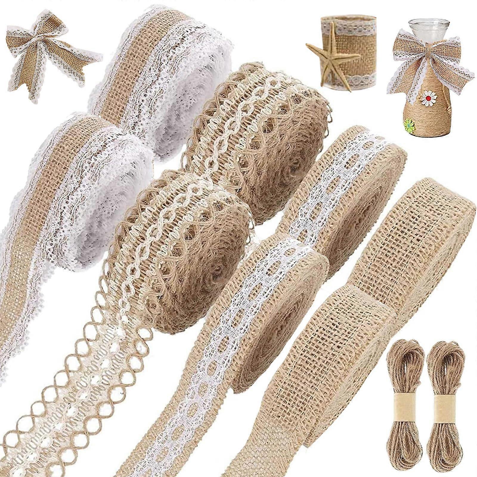 Jute Ribbon with Lace, 8 Rolls Vintage Jute Ribbon Natural Hessian Lace Ribbon White with 2 Rope, DIY Craft Supplies 82