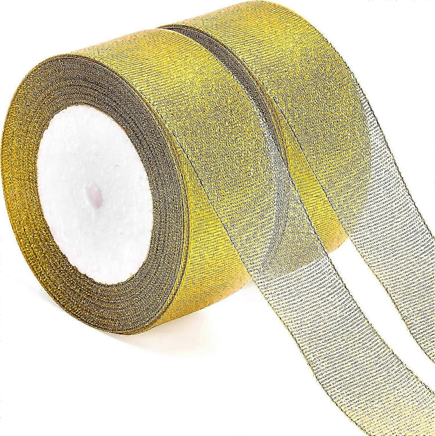 Gold Ribbon SizeYou will receive 2 rolls of 4cm/40mm shiny gold ribbon, 44m in total, each roll 22m. It comes in a roll, easier to use and store, can be cut into any size to fit your ornaments. Gold Organza RibbonThe wrapping ribbon is made of high quality organza with good texture, precisely woven and has a good overlocked edge, not easy to tear, flexible and wrinkle resistant, easy to curl and shape. Glitter Christmas RibbonThe glitter ribbon shines under the light with shiny metallic color, can be used as Christmas tree ribbon, gift wrapping ribbon, make beautiful bows for gift boxes or use on wreaths, fits the Christmas theme well and creates a festive atmosphere. Attractive Craft RibbonThis glitter craft ribbon is great for scrapbooking, invitations, hair ties, tying bouquets, bookmarks, gift cards, sewing, balloons, used as cake decorating ribbon or florist ribbon, sure to bring you a happy holiday season. Easy to UseThese glitter craft ribbons are easy to use and can be cut into any size to fit your ornaments. Easy to UseThe glitter ribbon is ... It will make crafts or gifts that stand out and look stunning. Versatile RibbonWho could resist adding a wow touch to their special moment with delicate and elegant ribbons like this? Add sparkle to your Christmas decorations, weddings, birthday parties, bridal showers, baby showers, anniversaries, Valentine's Day, etc.!