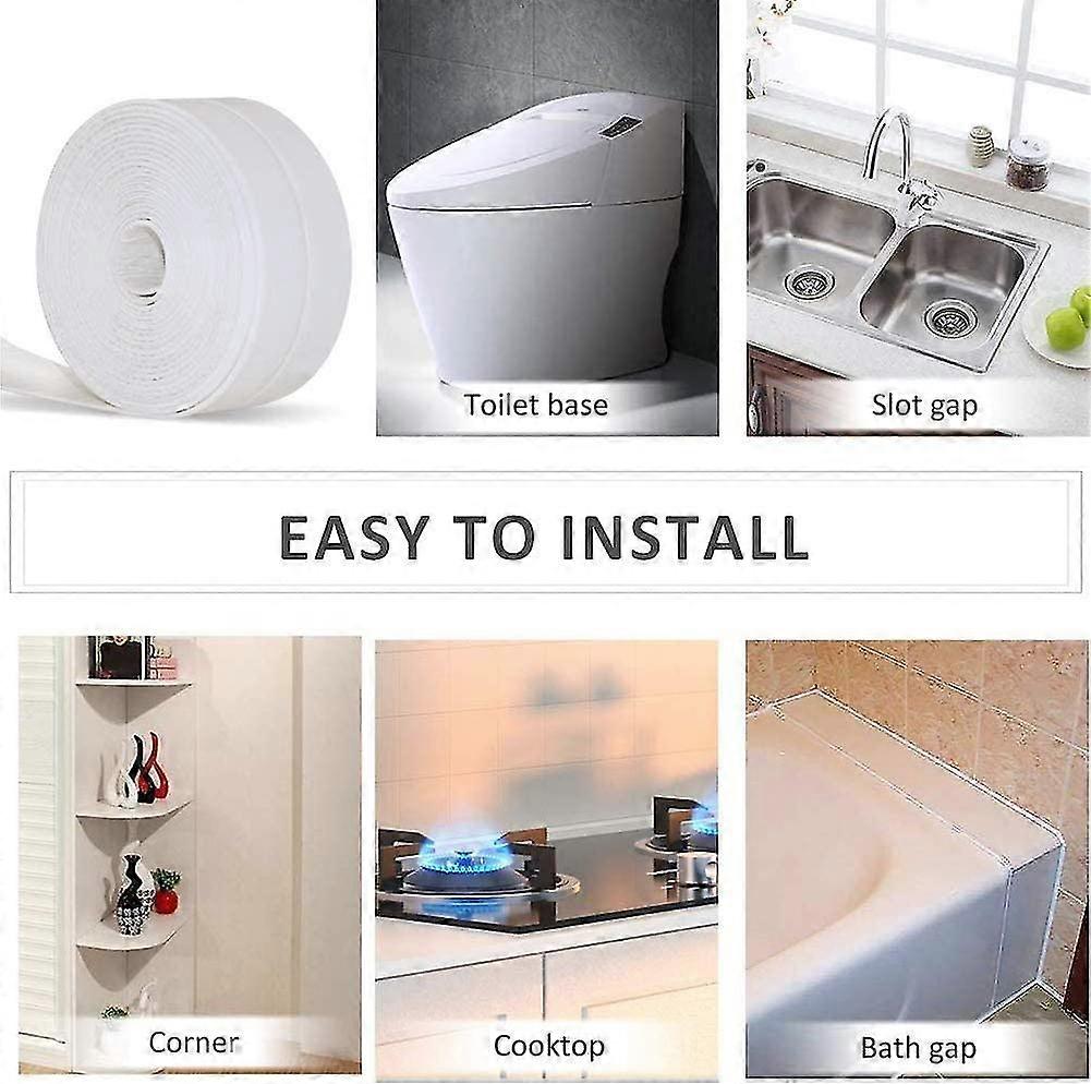 Widely Used Sealing Tape Can Be Used In Kitchen Stoves, Sinks, Bathtub Edges, Gaps Between Walls And Walls, Window Sills And Other Moisture-Sensitive Cracks, Dead Corners And White Paint. You WonT Worry. This Bathroom Caulking Tape With A Middle Crease Can Easily Adjust to Any Angle. . Easy Installation Peel Off The Plastic Film On The Back Adhesive And Press It Around The Sink Several Times. If You Use A Hair Dryer After Pasting, The Effect Will Be Better. . Safety Pvc Material The Sealing Strip Is Made of High Quality Waterproof Pvc Material, Excellent Waterproof Tape With Long-Lasting Sealing And Adhesion. It Is Waterproof, Mildewproof, Acid And Alkali Resistant, Corrosion And Heat Resistant. You Can Use It With Confidence. . Flexible Design The Flexible Pvc Gasket Has A Crease Design That Can Be Folded 90 Degrees to Tightly Seal The Joints Between Walls. This Product Can Be Used In The Bathroom, Toilet, Kitchen, Sink, Stove Edge. . Exquisite Gift Is An Excellent Accessory for The Kitchen to Prevent Oil Stains And Mildew. It Helps The Kitchen Be More Tidy And Clean, And Is A Nice Gift for Housewives. .