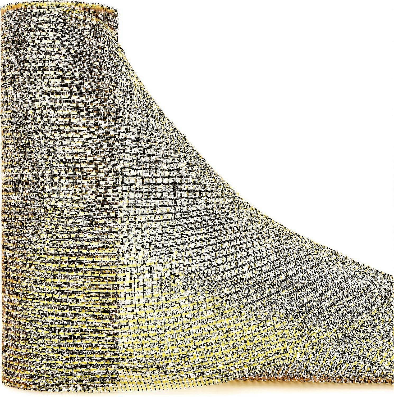 Gold Metallic Mesh Ribbon, 10 Inch X 30 Feet(10yard), Gold With Gold Deluxe Foil, Christmas