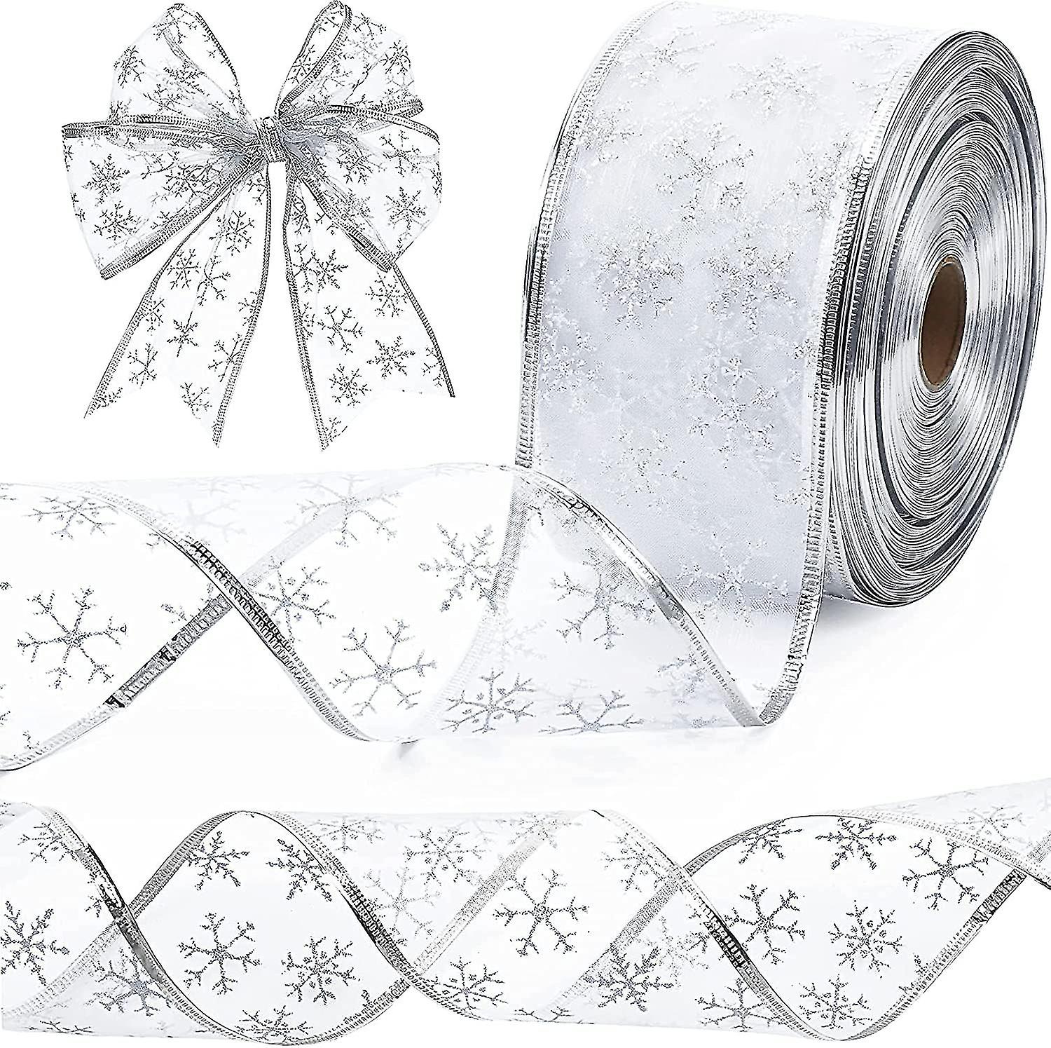 Christmas Tree Ribbon, Glittery Snowflake Organza 2.5 Inch X 11 Yard - Wired Ribbon for Christmas Decor^ccgv2