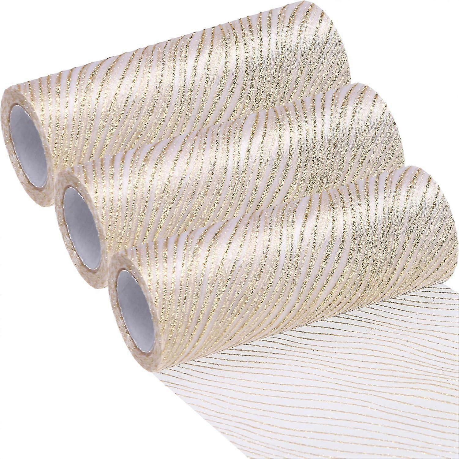 Sheer Glitter Yarn Ribbon For Christmas Decor 3-pack Of 6-inch-wide Ribbons (champagne)