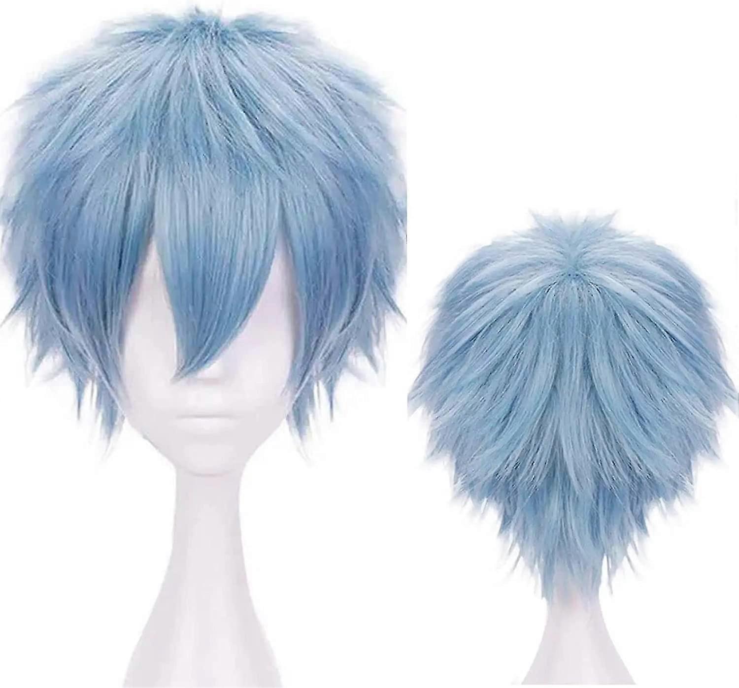 Light Blue Wigs for Boy Short Wavy Wigs Blue Cosplay Wig for Halloween Synthetic