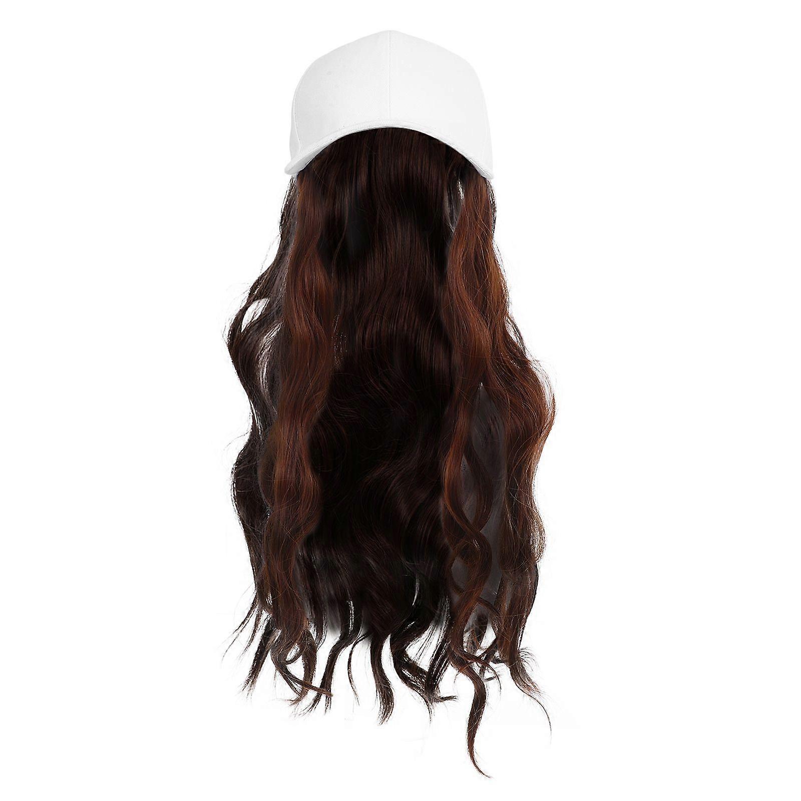 Long Curly Wig: White Baseball Cap With Brown Hair Attached - Synthetic Wavy Wig Natural Looking For Daily Wear Or Outdoor Activities