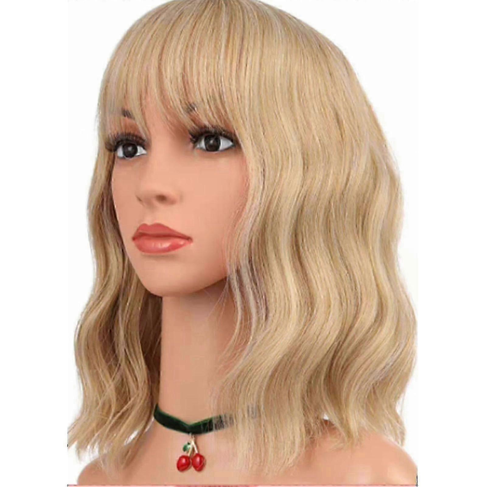 Short Wavy Curly Wig, Pastel Wavy Hairstyle Women's Bob Purple Pink Gold Curly Synthetic Cosplay Wig for Daily Use