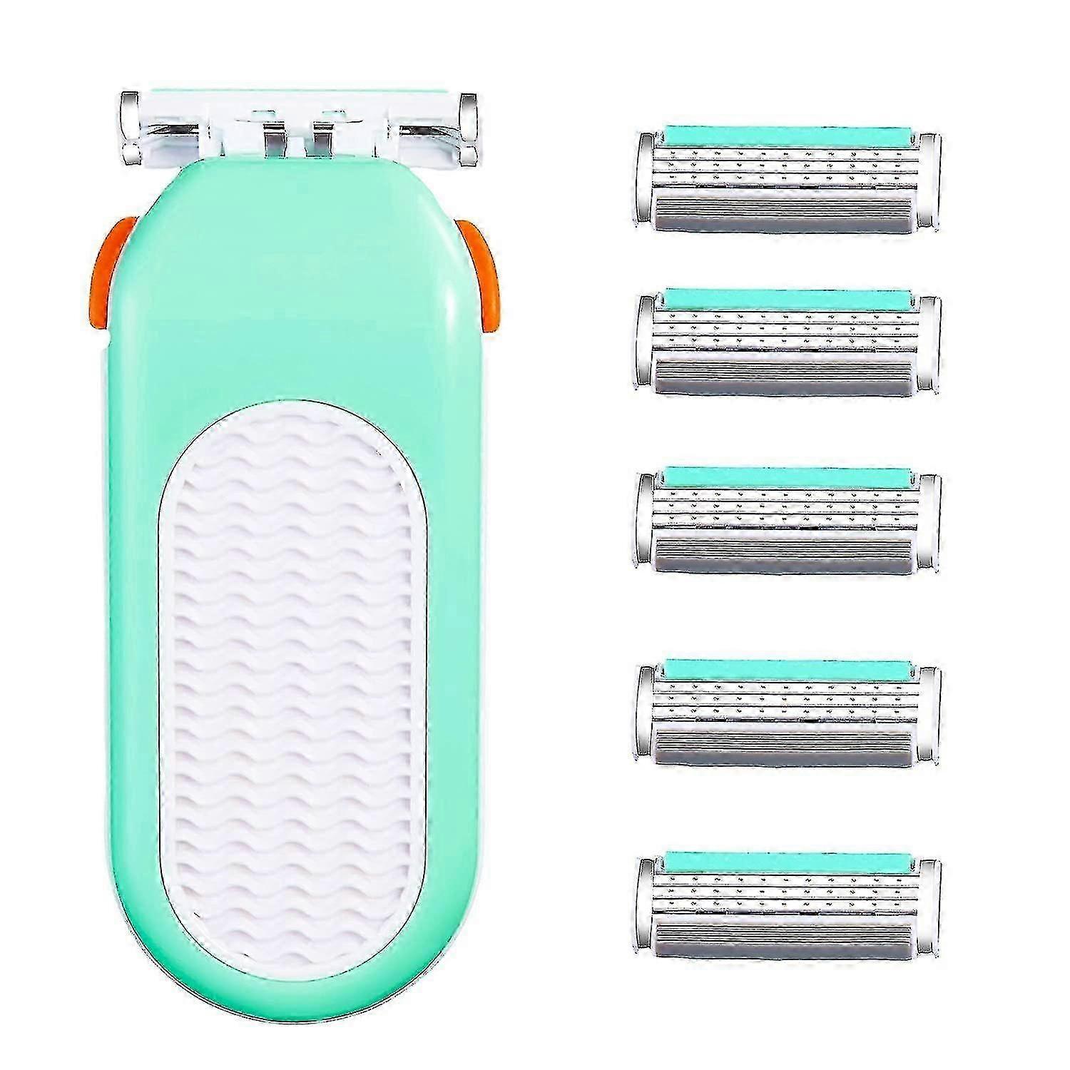 Razors For Women 6 Refills 3 Blades Shaver For Face Legs Bikini Area, Comfort Glid, Green