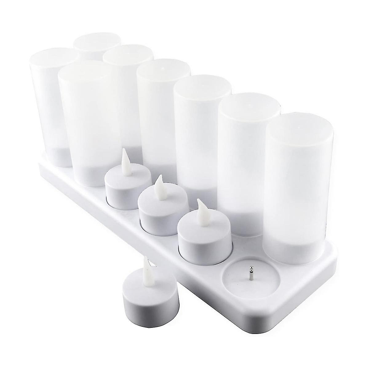Rechargeable Flameless Candle,12 Pcs Yellow Light Led Flickering Tea Lights&12 Frosted Cups,with Ch