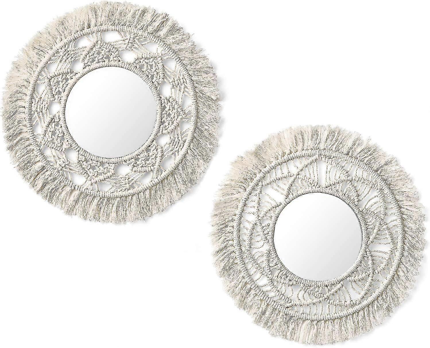 Hanging Wall Mirror With Macrame Fringe 2 Set Small Round Decoratic Boho Antique Mirror For Apartment Livingroom Bedroom Baby Nursery,beautiful Gift I