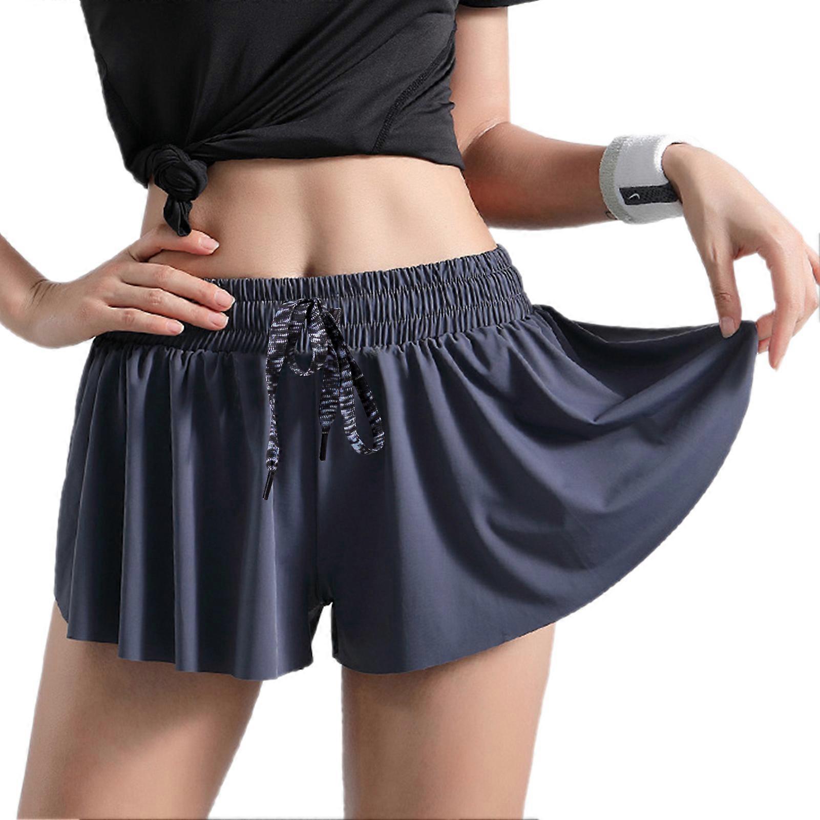 Sports Shorts Summer Double Layer Avoid Exposure Quick Drying Loose Fitness Shorts for Women Grey M