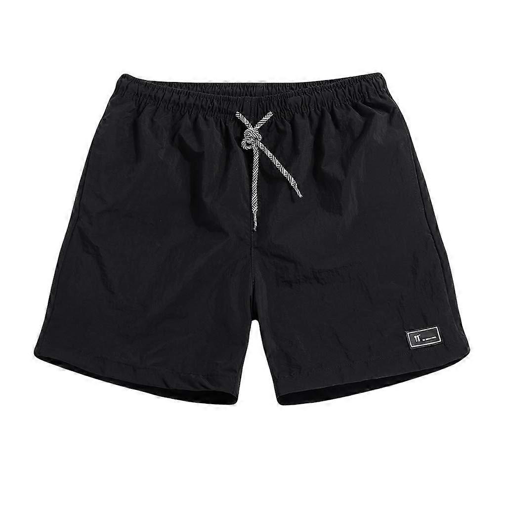 Men's Cotton Shorts - Summer Sports Trousers with Pockets, Elasticated Waist, Loose Fit Bermuda Shorts, Plain Black 4XL