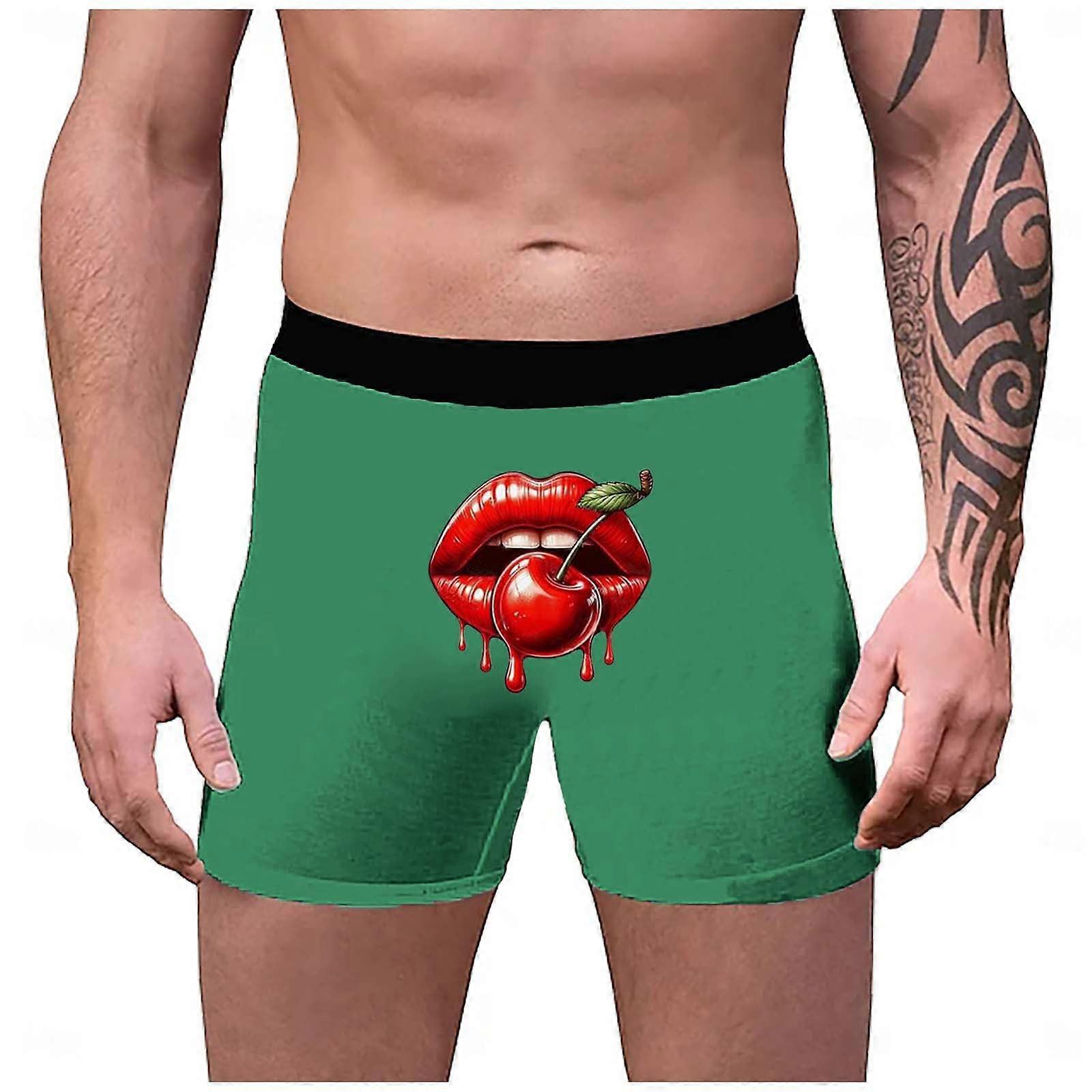 Men's Funny Valentine's Day Boxer Shorts, Humorous Lingerie, Sexy and Comfortable Custom Underwear, Lightweight Boxers, A9Green Size L