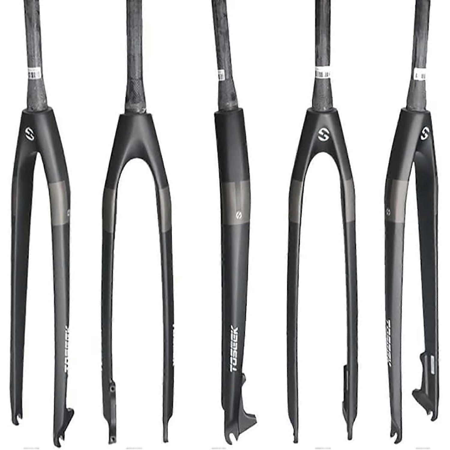 - FULL CARBON FIBER CONSTRUCTION: Engineered with ultra-light carbon fiber, this bicycle fork enhances your ride with exceptional aerodynamics. Experience quick start-up and acceleration while effectively absorbing road vibrations for increased comfort. - ULTRA LIGHTWEIGHT: Weighing in at approximately 560g, this fork significantly reduces your bicycle's overall weight. This lightweight design not only makes your bike more agile but also ensures stability during rides. - DURABLE AND LONG-LASTING: Unlike aluminum alloy, carbon fiber offers superior corrosion resistance. This means that even after extensive use, your fork will maintain its original condition, providing reliable performance for years. APPLICATIONS: - Ideal for competitive cyclists seeking lightweight components to improve speed and efficiency on race day. - Perfect for recreational riders who want a comfortable ride on varying terrains, thanks to the vibration-dampening properties of carbon fiber. - Excellent for mountain bikers who require a robust and dependable fork that withstands the rigors of off-road trails. Upgrade your cycling experience with this high-performance carbon fiber fork, designed for durability and optimized for speed.