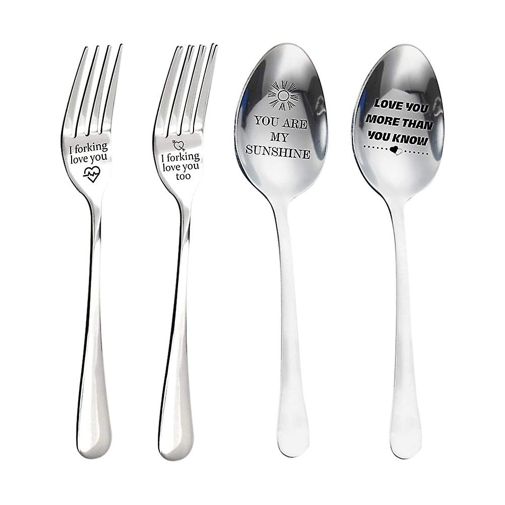 Engraved Fork and Spoon I Forking Love You Stainless Steel Dinner Fork Personalized Letter Engraved Fork and Spoon Unique Funny Gift