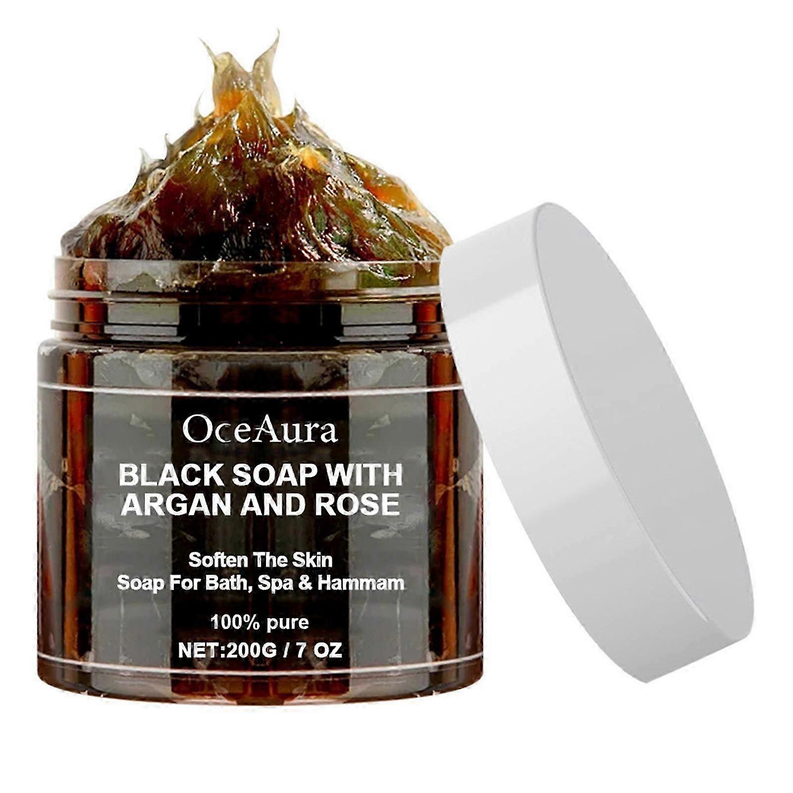Moroccan Black Soap with Argan & Rose - Morocco Gentle Exfoliating Spa Bath Soap for All Skin Types