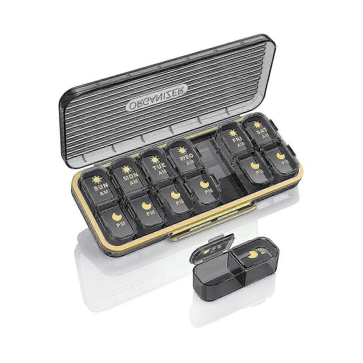 Am/pm Pill Organizer 7 Day, Pill Box 2 Times A Day Weekly Pill Organizer, Portable Daily Medicine Container Case, Black