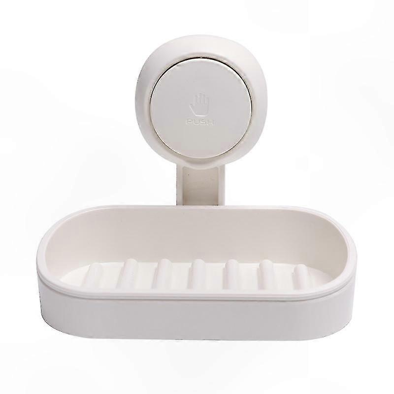 White Suction Cup Soap Dish, Drill-Free Reusable Shower Holder, 5KG Load Capacity, Quick 1-Second Installation, Waterproof Support for Bathroom Use
