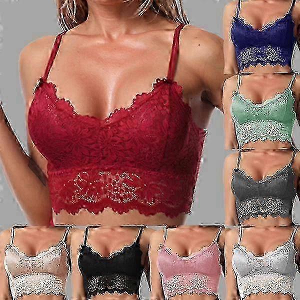 Women Sleeveless Lace Vest Bra Cropped Top Camisole Padded Tank Tops Fitness Underwear Floral Lace Bralette 7 Colors