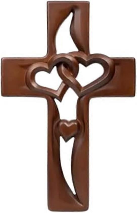 Intertwined Heart Wooden Cross, Wall Hanging Hand Antique Design, Two Hearts Joined, Handmade Wooden Intertwined Heart Wall Cross for Wedding Valentin