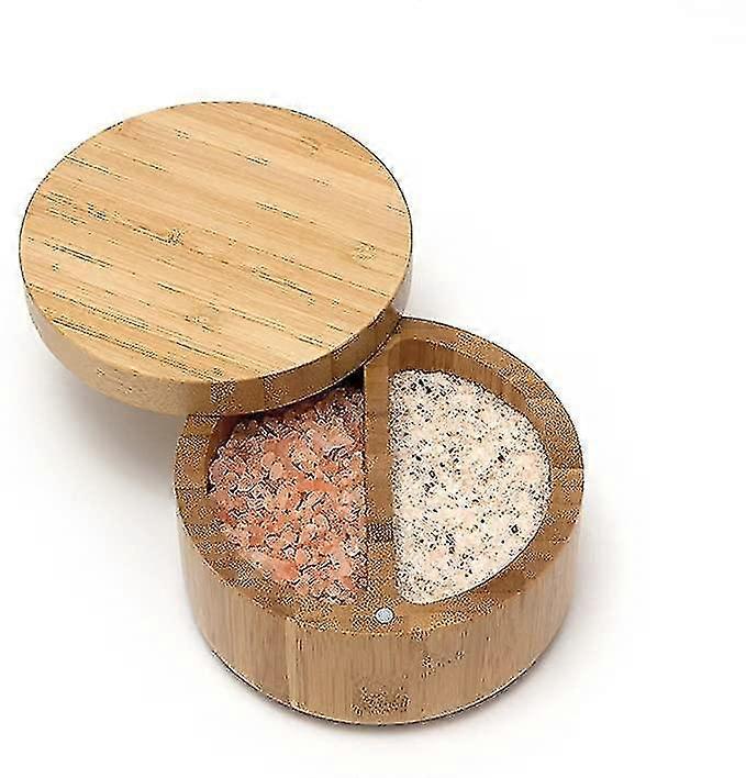 1Pc Storage Boxes Salt Box Wooden Bamboo Storage Box With Magnetic Swivel Lid Container For Kitchen Storage Containers Salt Box|Salt Pigs, Cellars ; Servers feature: Antibacterial and corrosion resistant Corrosion-resistant bamboo is an excellent raw material for making kitchenware. It is not only light, tough and hard, but also has a smooth surface and antibacterial properties. Rotating cover The salt box adopts a rotating lid design and is firmly closed by a magnetic lock. It can be easily opened with only one hand for quick access to spices during cooking. High-quality materials The salt box is made of natural high-quality bamboo, which has the characteristics of no cracking, no shavings, high hardness, and antibacterial. Easy to use Tear off the outer packaging when using it, rinse it with warm water, and use it immediately. After cleaning, hang out in a cool and ventilated place. application The storage box is suitable for storing sea salt, spices and office supplies, jewelry, bath and spa salt. Delivery Quantity: 1 Piece Product color: wood color Product size: 9*9*7cm
