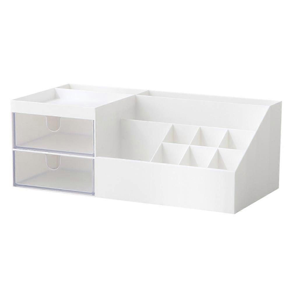 Compartment Storage Boxes White Plastic Case Simple Design For Makeup Holder In Living Room Protection From Scratches 1Pcs