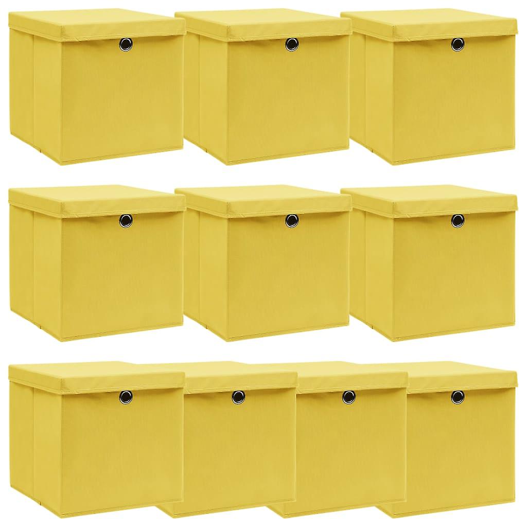 Aufbewahrungsboxen mit Deckeln 10 Stk. Gelb 32x32x32 cm Stoff
